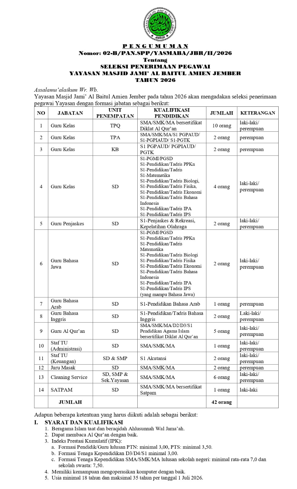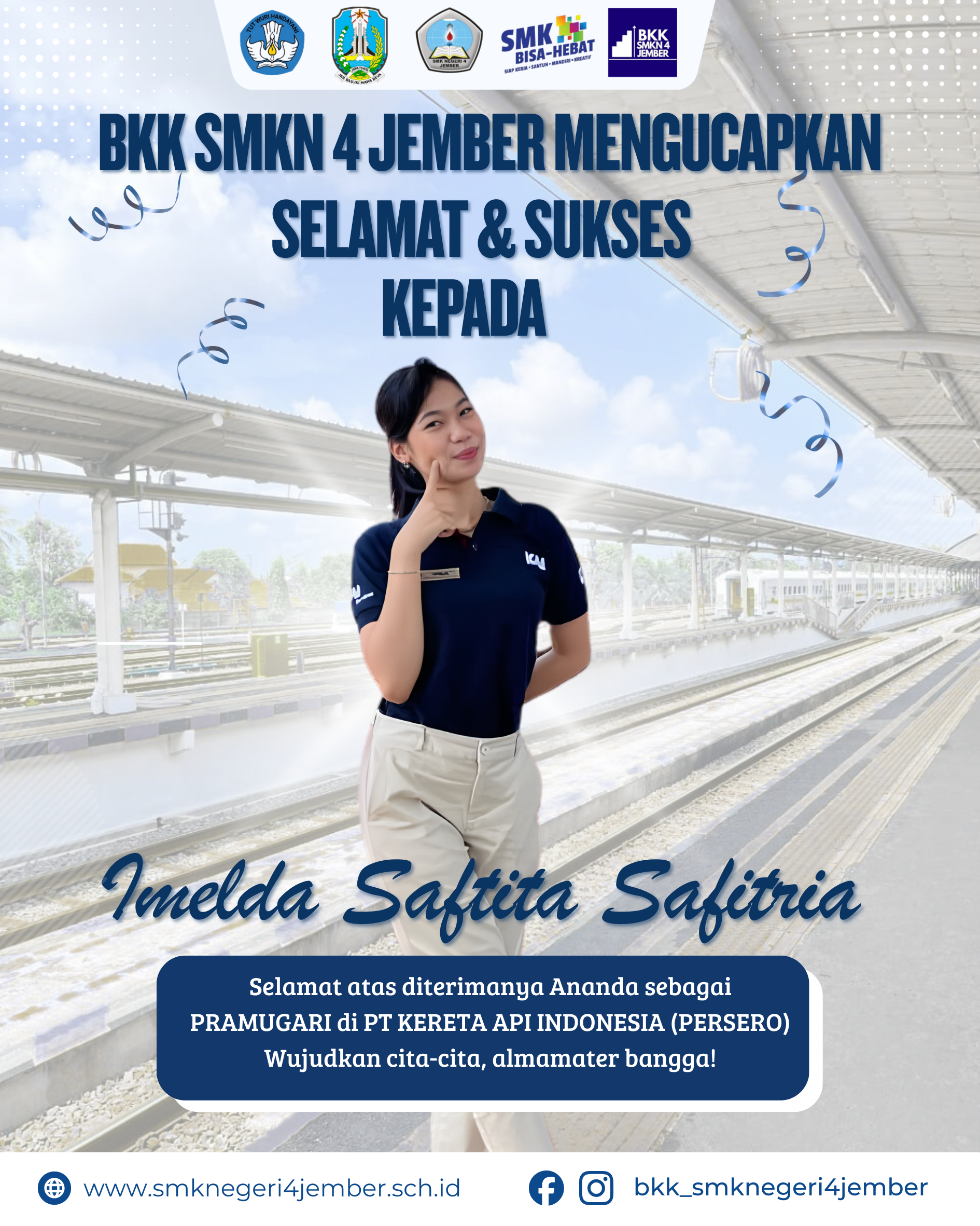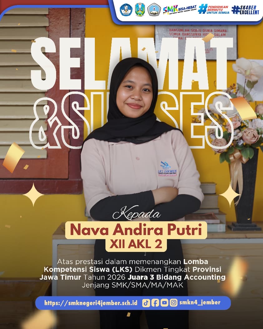Selamat Assalamu’alaikum warahmatullahi wabarakatuh, Salam sejahtera bagi kita semua. Puji syukur ke hadirat Tuhan Yang Maha Esa atas segala rahmat dan karunia-Nya, sehingga kita dapat terus menjalankan aktivitas pendidikan dengan penuh semangat dan dedikasi. Saya mengucapkan selamat datang di website resmi SMK NEGERI 4 JEMBER, sebuah media publikasi pusat informasi dan komunikasi yang kami hadirkan untuk seluruh warga sekolah, orang tua, alumni, dan masyarakat luas. Website ini menjadi sarana publikasi yang membuka akses ke berbagai informasi seputar sekolah seperti kegiatan, prestasi siswa, program-program unggulan, perkembangan sekolah, serta info lowongan kerja untuk para alumni. Sebagai Kepala Sekolah, saya berkomitmen untuk terus membangun lingkungan belajar yang inklusif, kontekstual, dan adaptif untuk mempersiapkan peserta didik menjadi lulusan yang kompeten, memiliki etos kerja baik, unggul, dan mampu bersaing. Akhir kata, kami mengajak semua pihak untuk bersama-sama berkontribusi dalam memajukan pendidikan dan menjadikan SMKN 4 JEMBER sebagai lembaga pendidikan yang unggul. Terima kasih atas kunjungannya, semoga website ini dapat memberikan manfaat dan inspirasi.