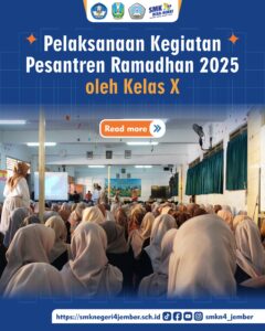 Pada Jumat 14 Maret, kegiatan pesantren Ramadhan minggu pertama ditutup dengan kegiatan Khataman, tausiah, dan berbuka bersama untuk pada guru dan staf SMKN 4 Jember. Kegiatan Pesantren Ramadhan masih terus berlanjut sampai Hari Kamis 20 Maret 2025. (GuLa)