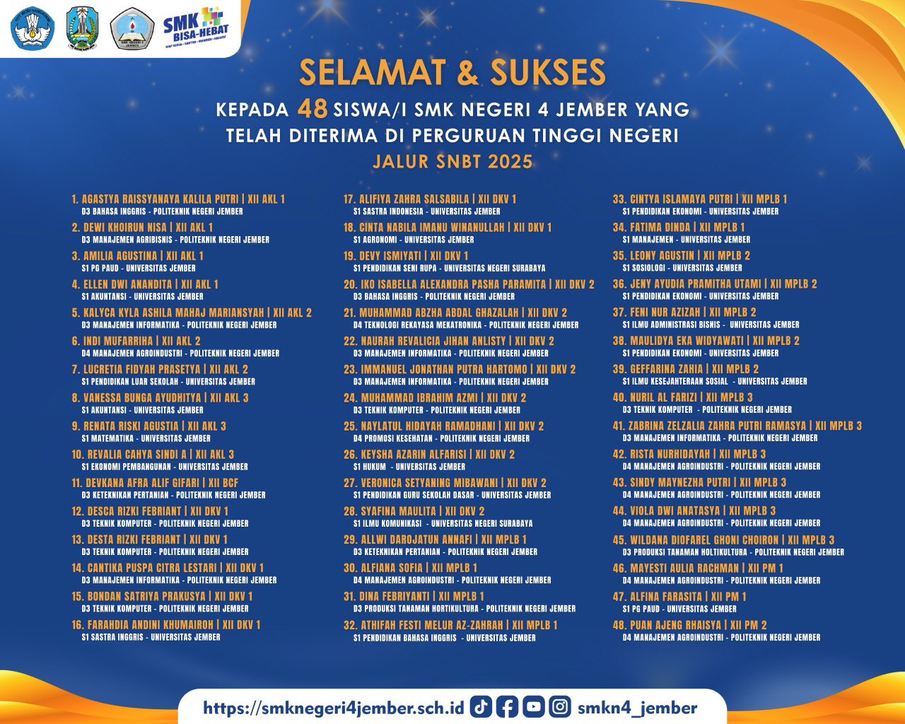 Kelulusan SNBT 2025: 47 Siswa SMKN 4 Jember Lolos ke Perguruan Tinggi Favorit