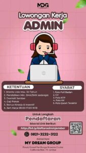 Ketentuan; Wanita usia maksimal 30 tahun Pendidikan minimal SMA/SMK sederajat Domisili Jember Gaji pokok Bonus kinerja dan insentif Jam kerja 08.00 – 17.00 WIB Syarat; Foto full badan CV Foto KTP Foto KK Foto Ijazah terakhir