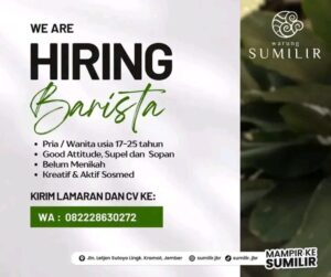 Kualifikasi; Pria/wanita usia 17-25 Tahun Good attitude, supel dan sopan Belum menikah Kreatif dan aktif sosmed Kirim lamaran dan CV ke; WA; 082228630272