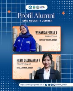 Selamat telah diterima kerja sebelum lulus. Winanda Fitri S., jurusan Akuntansi sebagai Marketing Central Yamaha Jember. Hesti Dellia Aria R., jurusan MPLB sebagai Receptionist Hotel Luminor Jember.