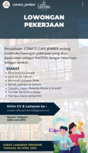 Lowongan Kerja di Conato Jember sebagai Waiters.