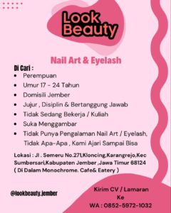 Lowongan Kerja Nail Art dan Eyelash di Look Beauty.