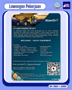 LOWONGAN PEKERJAAN MECHANIC – HEAVY EQUIPMENT.