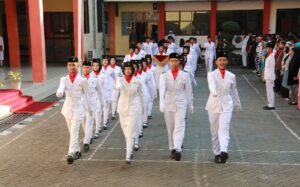 Muhammad Anwar maulana (X MPLB 2), anggota Pasukan Pengibar Bendera Pusaka (Paskibraka) dari jurusan Manajemen Perkantantoran dan Layanan Bisnis selanjutnya membawa bendera Merah Putih untuk kemudian dikibarkan. Adapun Paskibra lainnya yang bertugas mengibarkan bendera yakni Mochamad Raflly Eigar (X MPLB 2) sebagai pembentang bendera, Supriyadi (X Pemasaran 3) sebagai penggerak bendera. Sementara itu, Arbi Bagustian (XI DKV 1) bertindak sebagai Komandan Paskibraka.