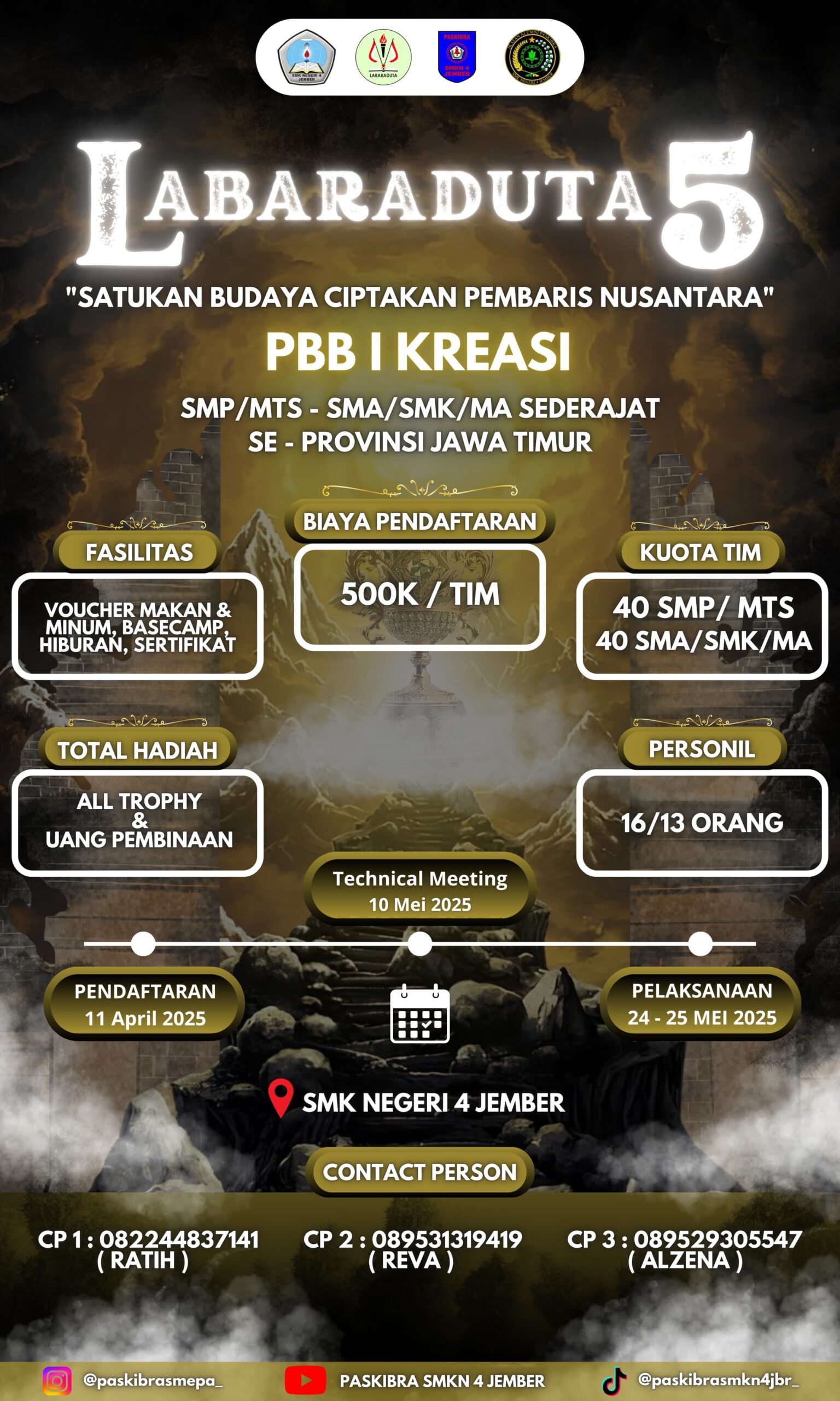 Paskibra SMK NEGERI 4 Jember Mempersembahkan : 𝐋𝐀𝐁𝐀𝐑𝐀𝐃𝐔𝐓𝐀 𝐒𝐄𝐀𝐒𝐎𝐍 𝟓
