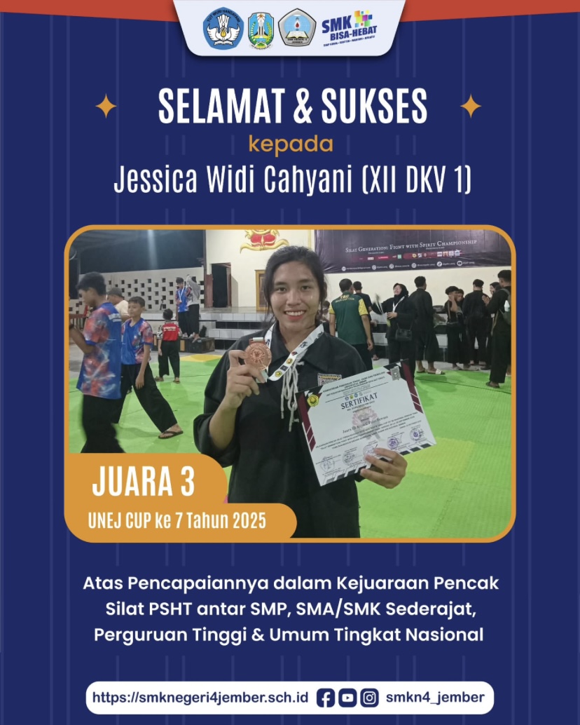 Jember – Tim Paskibra SMK Negeri 4 Jember berhasil meraih prestasi Mula 3 dalam ajang LKBB (Lomba Ketangkasan Baris-Berbaris) Khasan Mujahid yang diselenggarakan pada 17 Januari 2026 di SMK Plus Al Mujahidin Gumukmas. LKBB Khasan Mujahid merupakan lomba yang dilaksanakan secara rutin setiap satu tahun sekali dan diikuti oleh peserta tingkat se-Jawa Timur dengan sistem […]