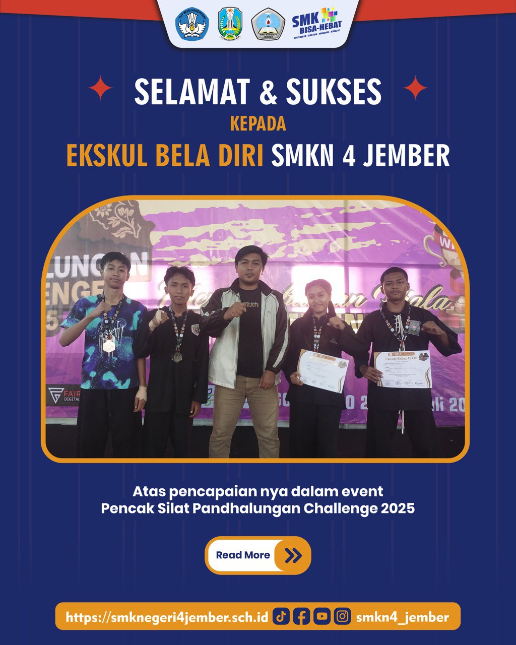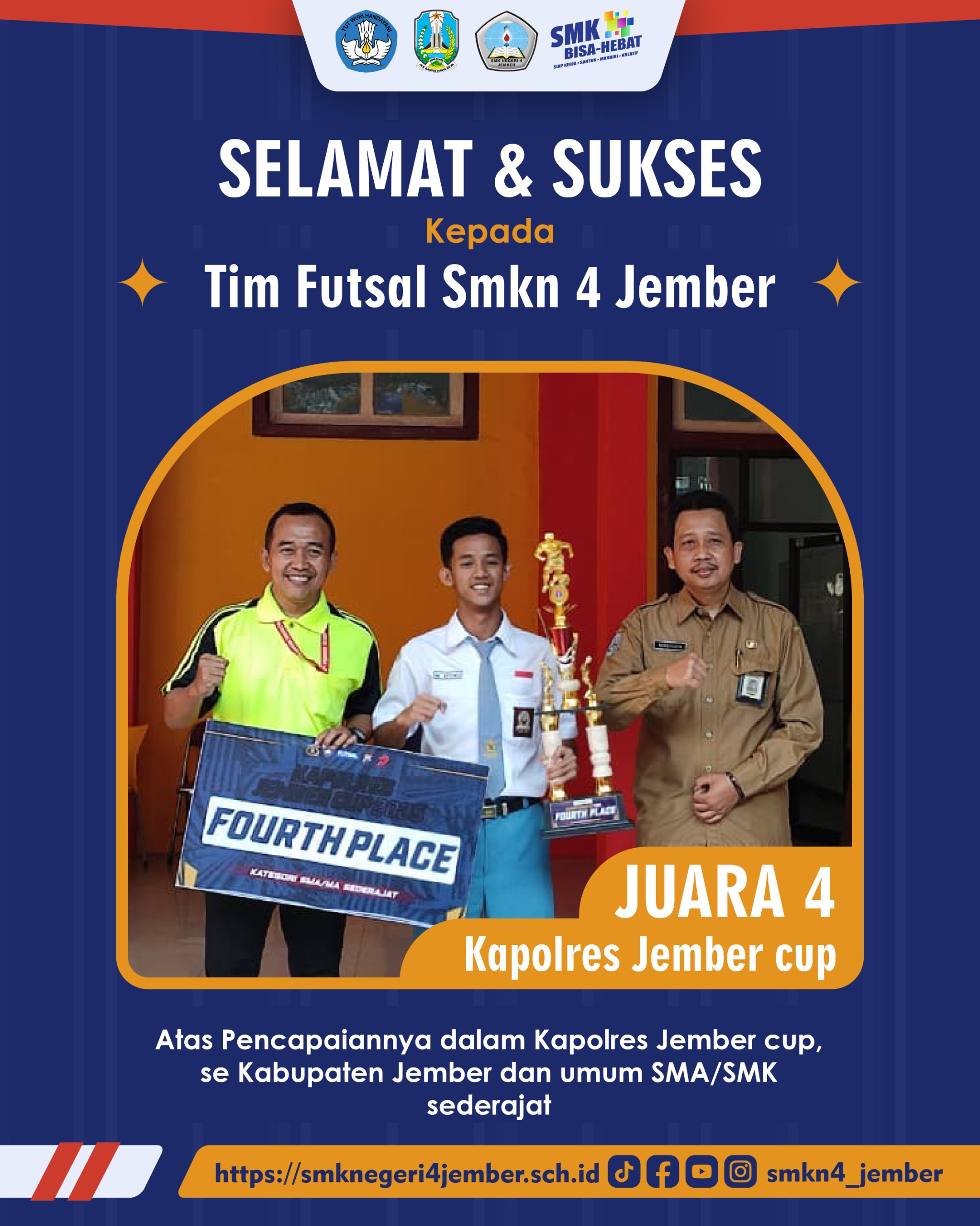 Jember – Tim futsal SMKN 4 Jember berhasil menorehkan prestasi membanggakan dengan meraih juara 4 pada ajang Kapolres Cup Jember 2025 tingkat SMA. Kompetisi ini berlangsung pada 28 Juli hingga 3 Agustus 2025 di GOR PKPSO Jember dan diikuti oleh berbagai sekolah menengah atas se-Kabupaten Jember. (4/08/25) Dalam kompetisi tersebut, SMKN 4 Jember menurunkan 12 […]